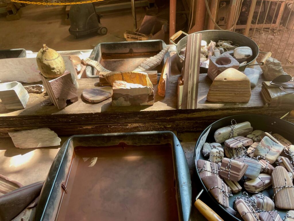 Wir sind absolut begeistert von Brian & Jo in Kununurra und ihren Zebra Stone-Kunstwerken! Von kleinen Skulpturen bis zu riesigen Esstischen – jedes Stück handgefertigt und einzigartig. Ein Besuch in ihrer Galerie ist ein echtes Erlebnis.